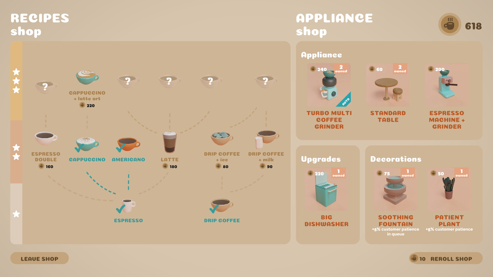 — Управление: Выбирайте рецепты кофе, которые хотите предложить каждый день, учитывая предпочтения клиентов и экспериментируя с новыми вкусами.