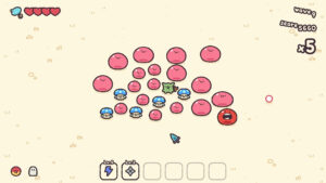 В игре представлена возможность комбинировать различное оружие и предметы для создания уникальных сборок, усиливающих вашего курсора. Основные элементы игры включают удары, уклонения, улучшения и повторение действий в бесконечном цикле.
