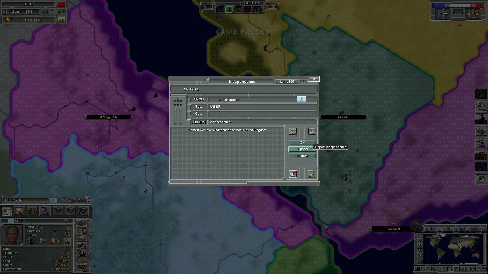 В игре вам предстоит управлять вооруженными силами, экономикой и дипломатией своей страны, принимая участие в ключевых исторических событиях, таких как Корейская война и Берлинский кризис.