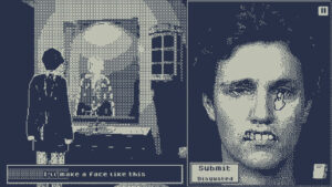 На правой стороне экрана игрок манипулирует крупным планом своего лица. В игре вы будете контролировать мимику главного героя. В игре есть 15 концовок и выборочный геймплей. Игра также имеет достижения Steam и дизайн визуального стиля Ditherpunk3.